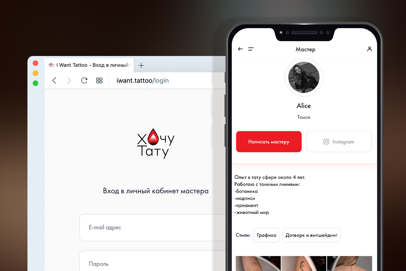 В рамках проекта мы создали экосистему, состоящую из кроссплатформенного мобильного приложения для платформ iOS и Android, личного кабинета тату-мастера и единой системы управления.