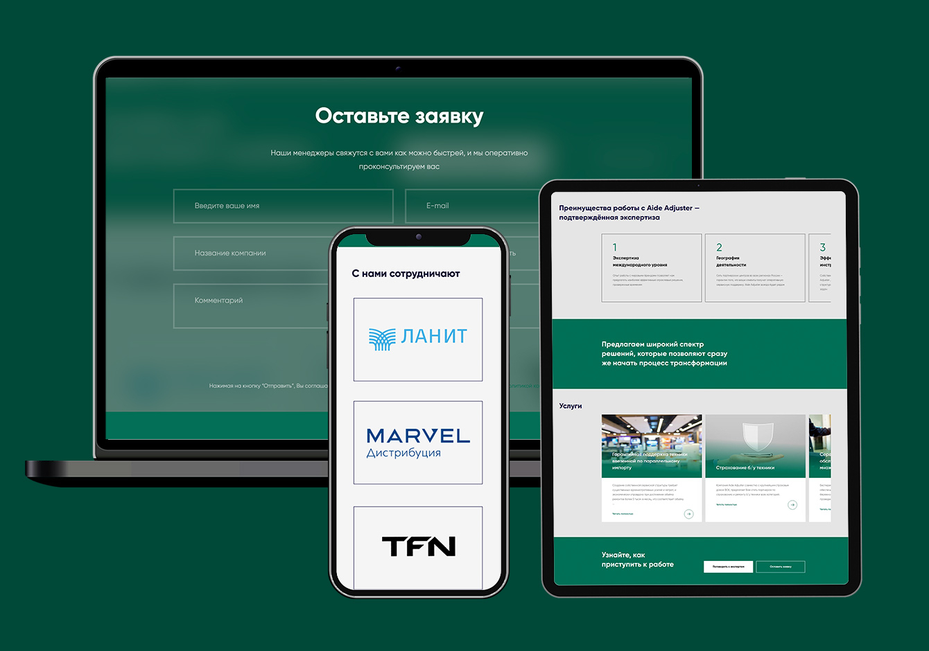 На главной странице сайта мы разместили всю важную информацию о клиенте для потенциальных партнеров: