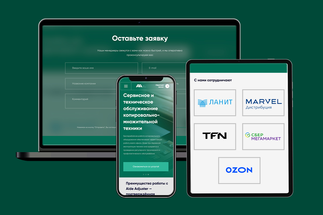 Клиент обратился к нам с просьбой создать сайт для их нового продукта, который поможет оптимизировать работу с крупными партнерами. AIDE активно ведет сотрудничество с компаниями, в число которых входят Яндекс.Маркет и Озон.