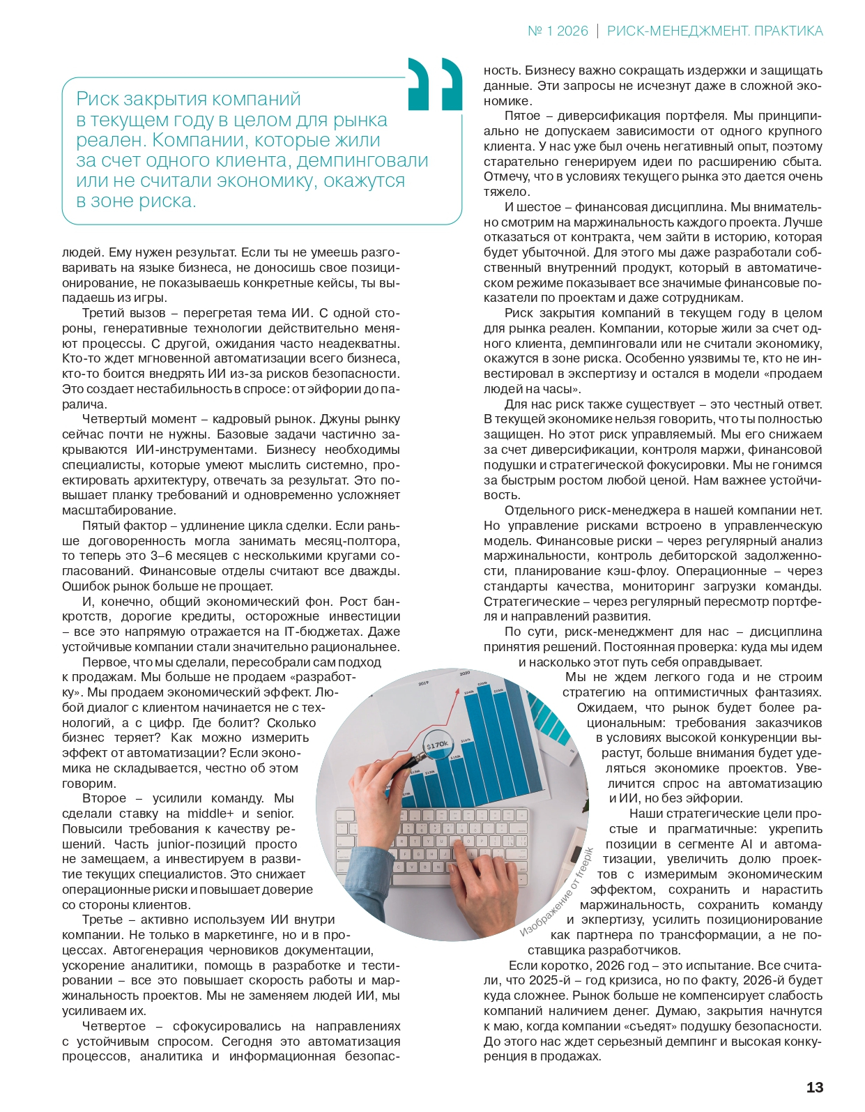Выживание без иллюзий. Риск закрытия компаний в 2026 реален. Под ударом те, кто работал с одним клиентом, занимался демпингом или жил без финансовой подушки. Впереди — серьезная чистка рынка к лету.
