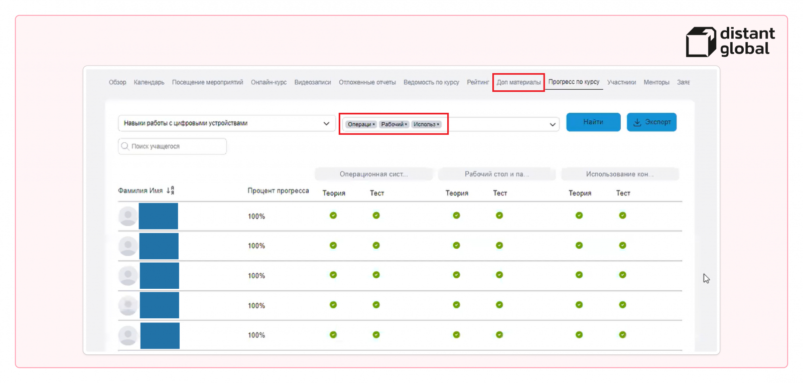 2. Персонализируйте обучение на платформе, взяв за основу расширенную статистику Distant Global.