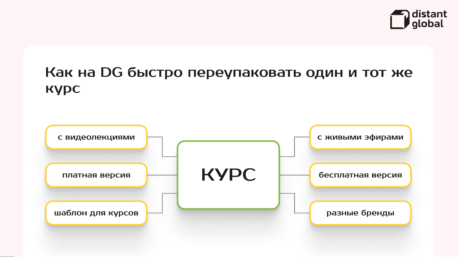 На Distant Global можно создавать проекты любой сложности: от мини-курсов до онлайн-обучения многих тысяч человек с выдачей сертификатов. Кроме того, использование платформы обходится без астрономических денежных затрат.