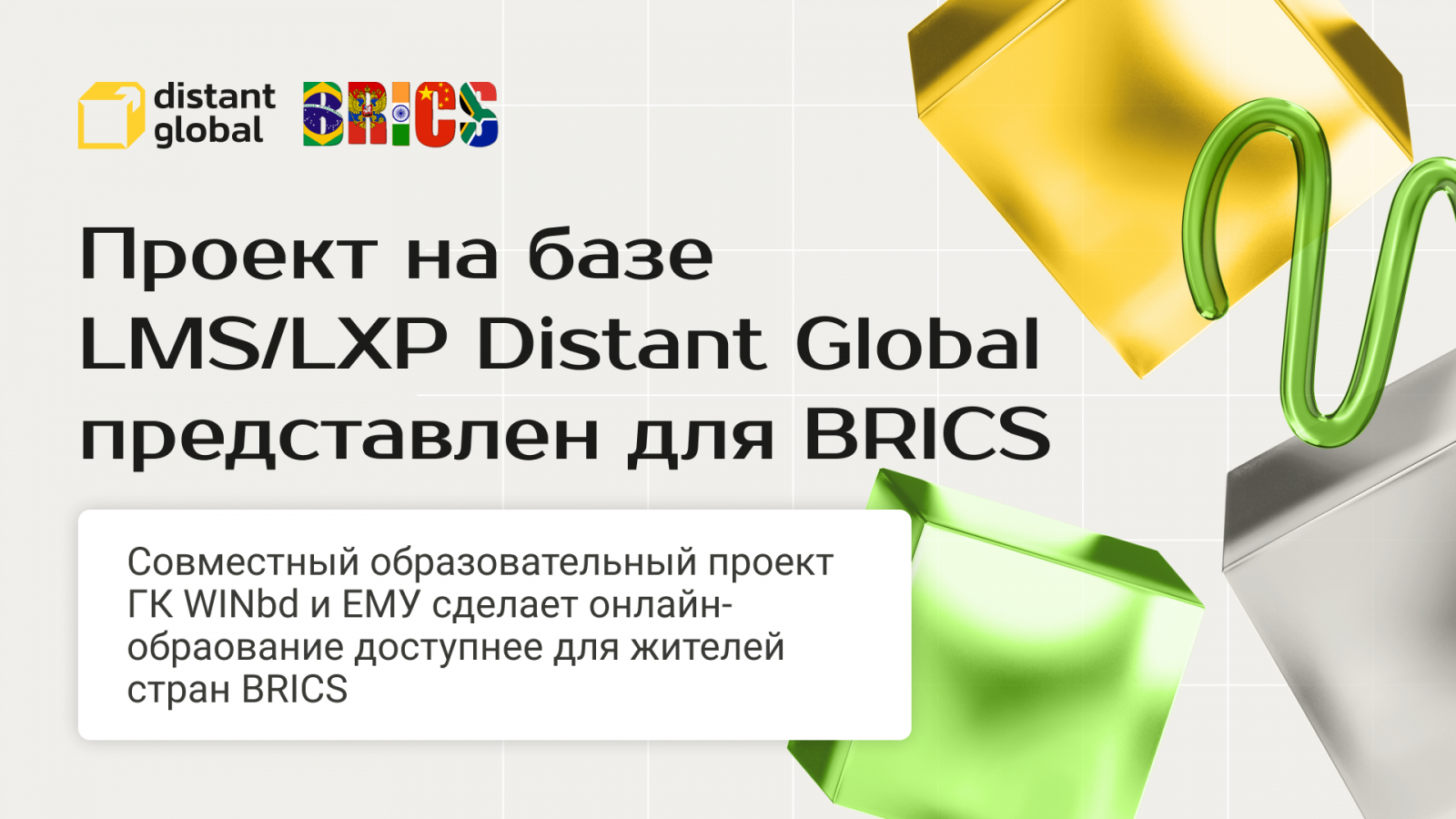 БРИКС — совместный проект ГК WINbd и Евразийского международного университета, созданный на базе LMS/LXP-системы Distant Global. Предполагается, что ее использование поможет странам-участницам второго Африканского международного конгресса достичь сразу трех целей.