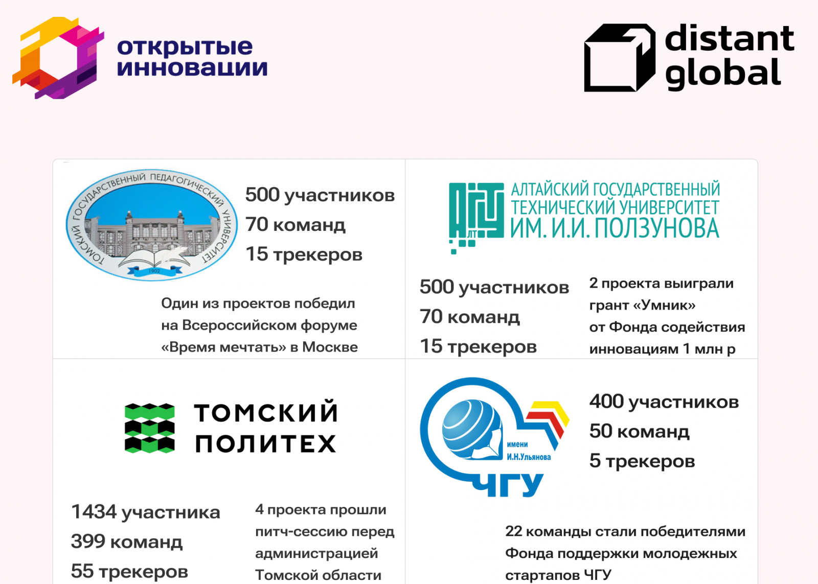 В 2023 году мы помогли 18 университетам запустить 24 акселерационные программы. На свет появилось более 1000 технологических проектов, в которых приняло участие 8500 человек. 12 акселерационных программ из 24 мы провели на LMS/LXP Distant Global. Рассказываем, как использование цифровой платформы повышало активность студентов и помогало организаторам комфортно управлять динамикой акселерационных программ. А также о том, как мы проводили на LMS/LXP одновременное обучение студентов и курсы повышения квалификации преподавателей.
