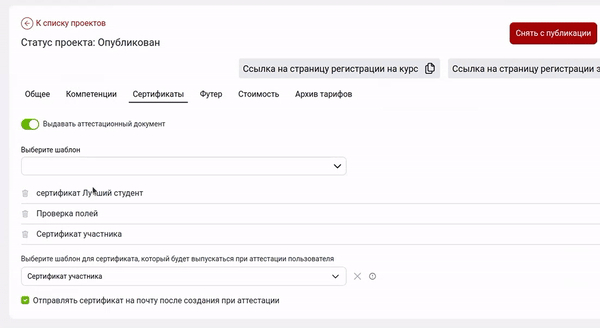 Если же массовая выдача документов не требуется, можно настроить точечную рассылку сертификатов. Например, чтобы документы получали слушатели в зависимости от курса, потока или должности.