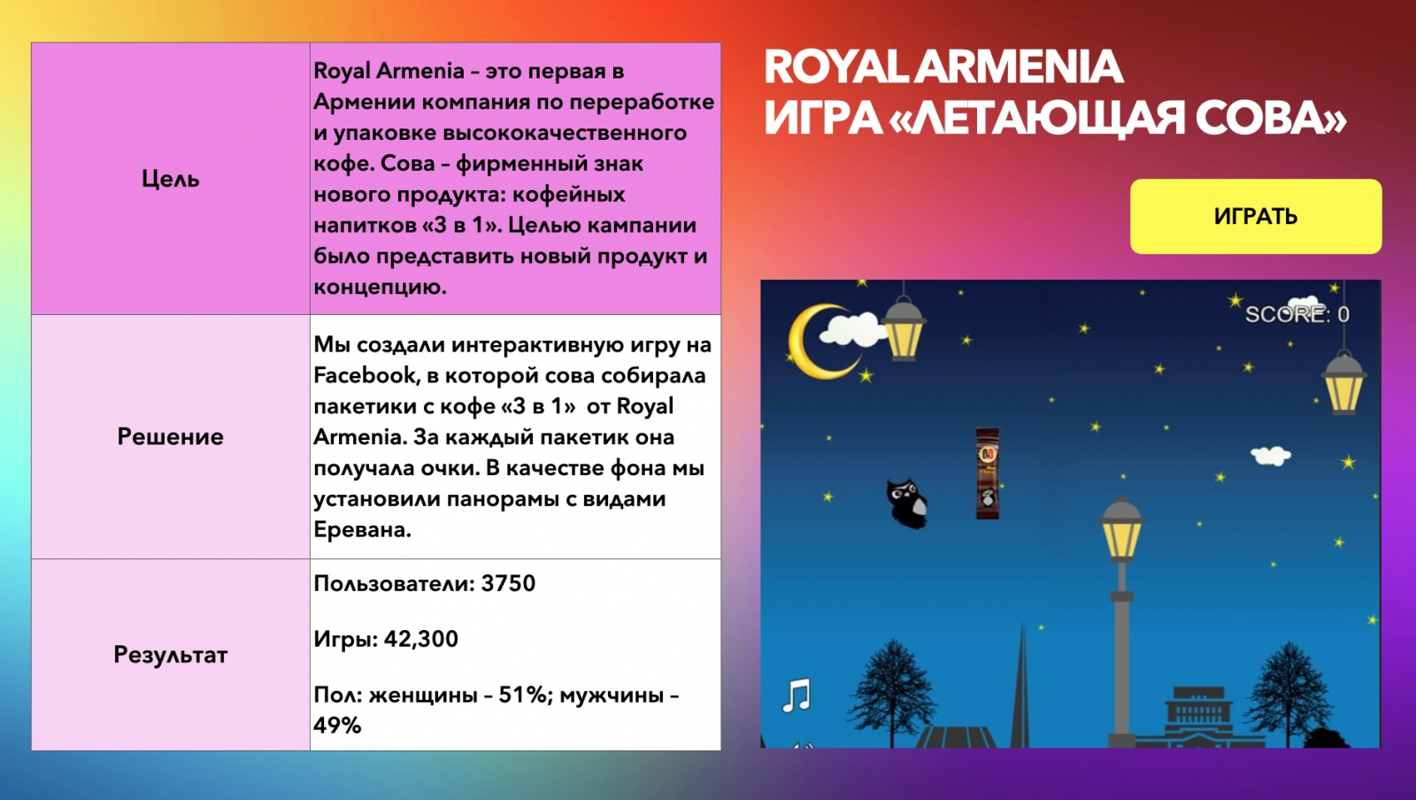 Используя данные технологии, Карамель уже помогла многим игровым брендам достичь высоких результатов и продолжает развивать направление гейм-индустрии совместно с площадками и рекламодателями.