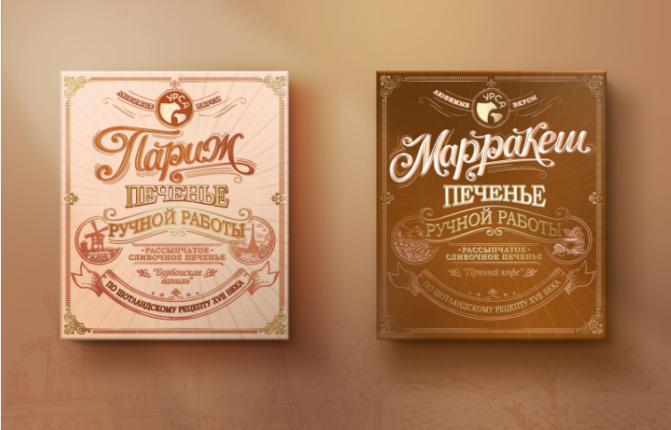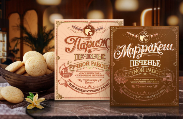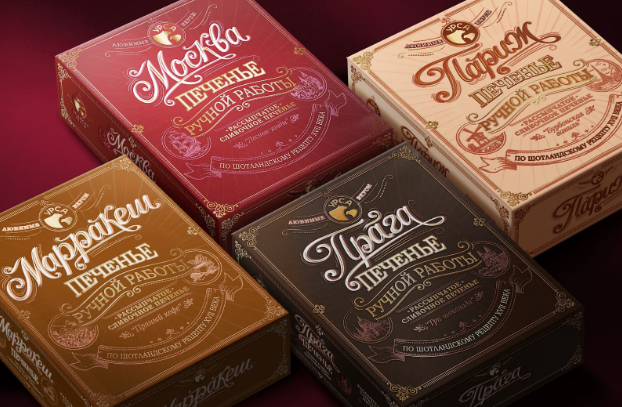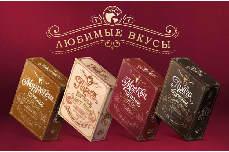 Например, для Москвы со вкусом лесных ягод был выбран тёплый красный цвет и разработаны гравюрные иллюстрации, символизирующие русский колорит и традиции. Для Праги с её насыщенным шоколадным вкусом – дизайн, отражающий теплоту и уют старинных пражских кафе. Париж представлен элегантным сливочным вкусом с нотами бурбонской ванили, навевающими романтику французских бистро и непременно с видом Эйфелевой башни. Марракеш воплотился в печенье с ароматом пряного кофе и восточных специй, передавая тепло и экзотику марокканского рынка.