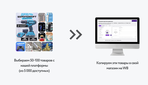 Всё. Серьёзно, всё :) Логистика и хранение на нас, а вам остаётся только работать по 3-4 часа в день в своём кабинете.