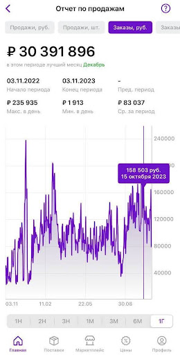 При том, что Александр – 1 из наших партнёров, уже работал на WB по системе FBO и хотел увеличить свой доход. А после того, как присоединился к Resellup и начал торговать по нашей системе, вышел на 30 млн оборота без использования рекламных инструментов.