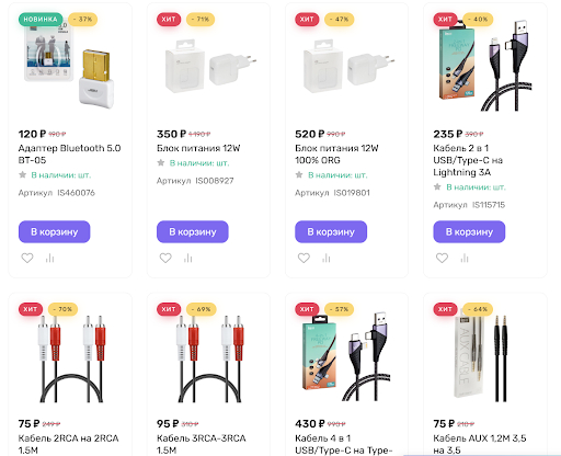 Ещё одна высокомаржинальная категория. Здесь самый эффективный в продажах ассортимент среди кабелей и адаптеров. А ещё очень часто отгружаем мышки и клавиатуры.