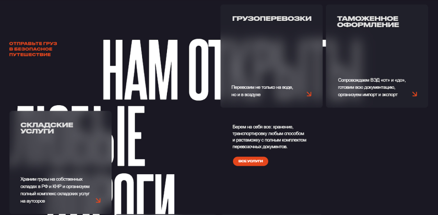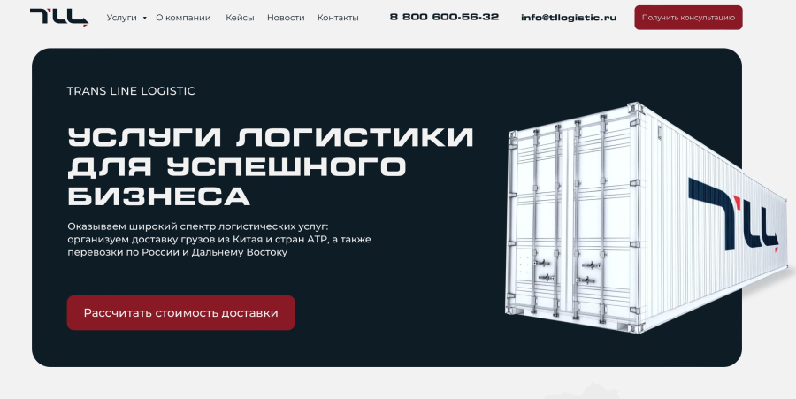 Так как ЦА логистических компаний — это менеджеры, то им важно увидеть основной спектр услуг, узнать об опыте компании и ее преимуществах, а также поскорее выяснить стоимость. Эти разделы и будут ключевыми. Креативу лучше дать место внутри страницы услуг, придумав привлекательные описания.