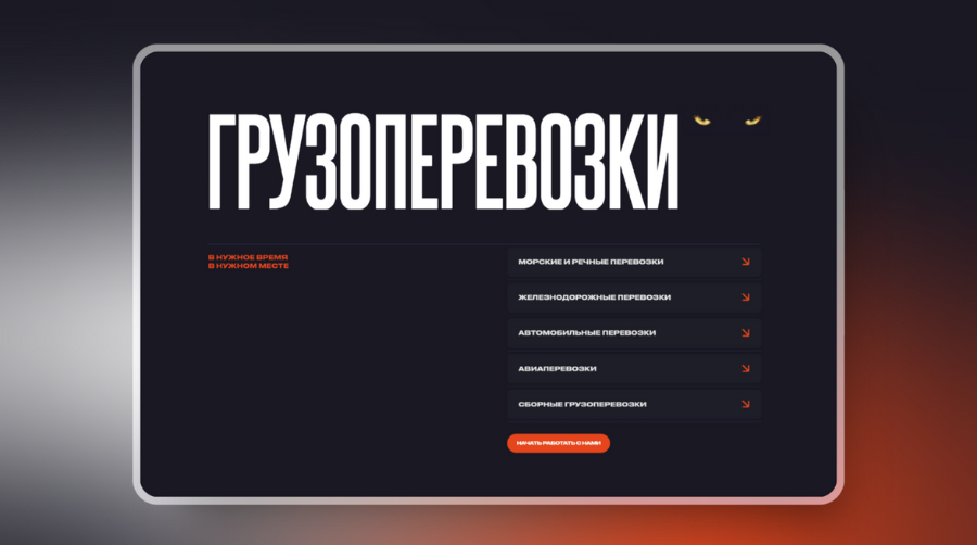 Сайт получился дерзким и запоминающимся. Он отличается от страниц конкурентов как дизайном, так и наполнением: мы постарались рассказать о компании так, чтобы у клиентов не осталось вопросов и сомнений — «Восток Логистик» можно доверять.