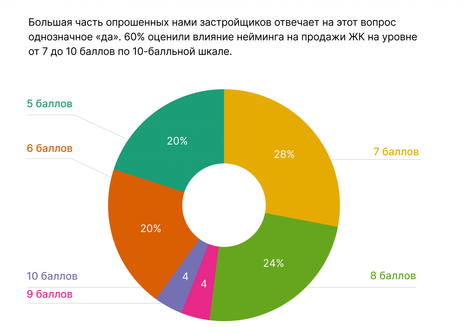 10, 78% опрошенных увековечивают имя компании в названиях проектов. Такой подход актуален для девелоперов с сильным узнаваемым брендом — тот случай, когда имя работает на продажи.