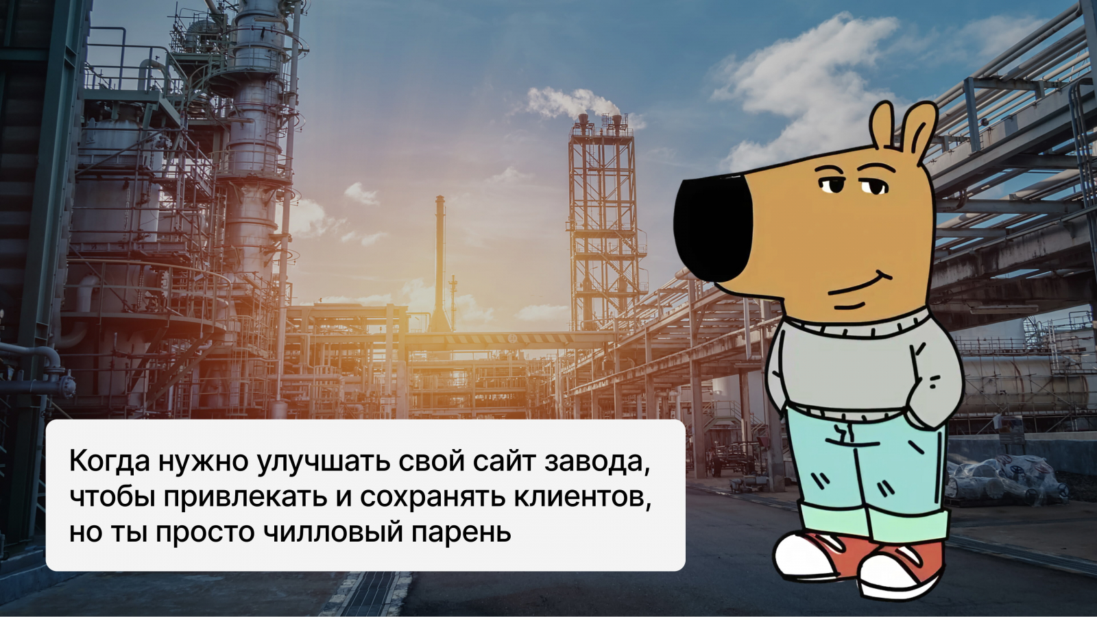 Главная проблема большинства сайтов промышленных предприятий, — они просто существуют, и не работают как маркетинговый инструмент. Клиенты попадают на старый, неудобный сайт, который не дает им конкретной информации про продукт и предприятие. Надо делать иначе. Чтобы было понятно, удобно и красиво.