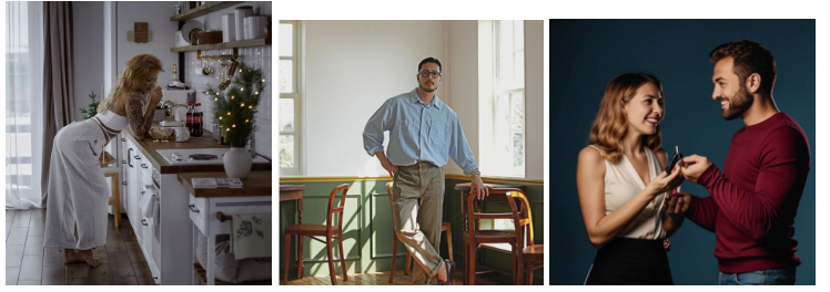 Сценарии ориентированы на ключевые сегменты: молодые семьи, свободные женщины и мужчины, а также семьи с детьми. Для каждого сегмента мы подобрали сцены, вызывающие ассоциации с уютом, радостью и комфортом. Например, для семей с детьми мы создали образы веселых игр на лужайке и совместной готовки, в то время как для одиноких покупателей акцент сделали на уютные вечера в одиночестве, где можно расслабиться с любимой книгой или фильмом.