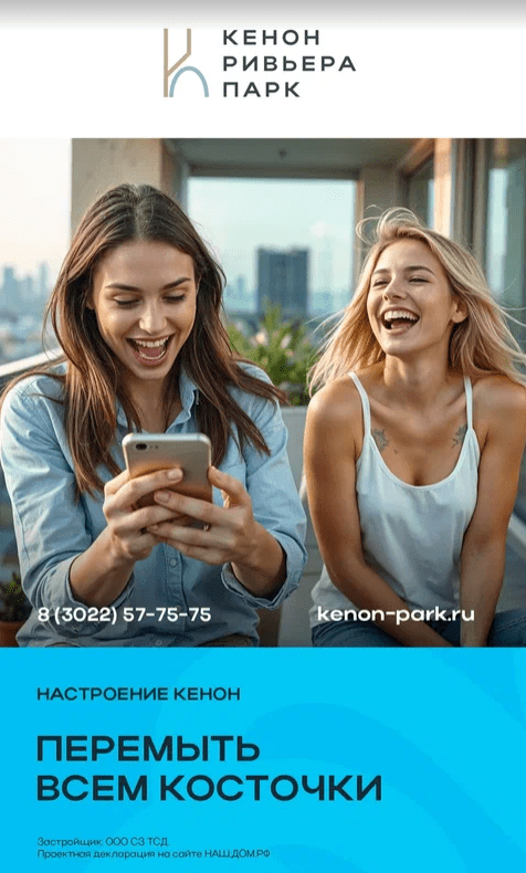 Это особенно важно, так как это сильно влияет на креатив. Если у бренд в коммуникациях сдержанный, то и креатив будет соответствующим. С ЖК «Кенон Ривьера Парк» в этом плане мы могли позволить себе смелый креатив. Тональность коммуникации этого бренда дружелюбная, современная, мотивирующая.