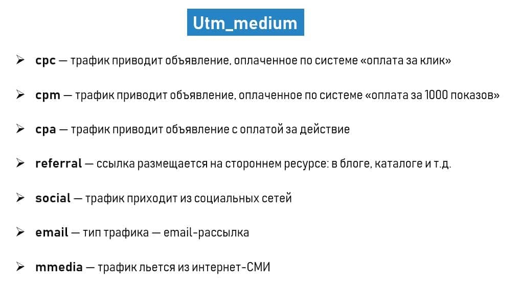 Основные параметры: utm_source, utm_medium, utm_campaign