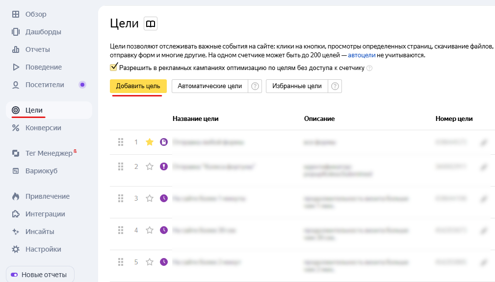 Убедитесь, что счётчик установлен на всех страницах и не блокируется скриптами, расширениями или настройками шаблона. Если счётчик работает нестабильно, то и данные по целям будут неполными, даже если вы всё настроили правильно.