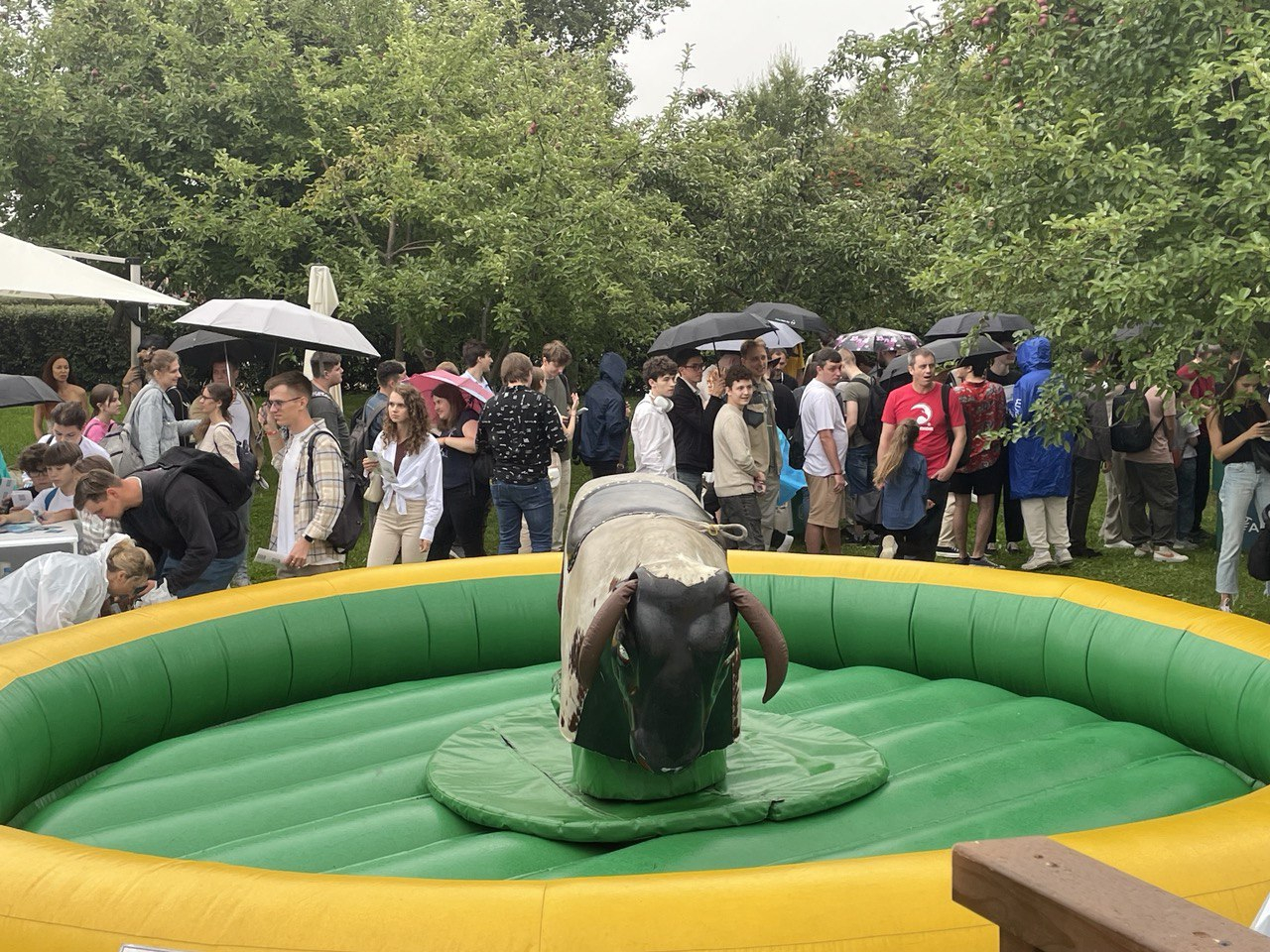 К аттракциону с быком сразу выстроилась очередь. По результатам опроса посетителей стенда, эта активность наиболее запомнилась 60% респондентов. В шляпах Arenadata на «ИТ-Пикнике» гуляло порядка 350 укротителей быка.