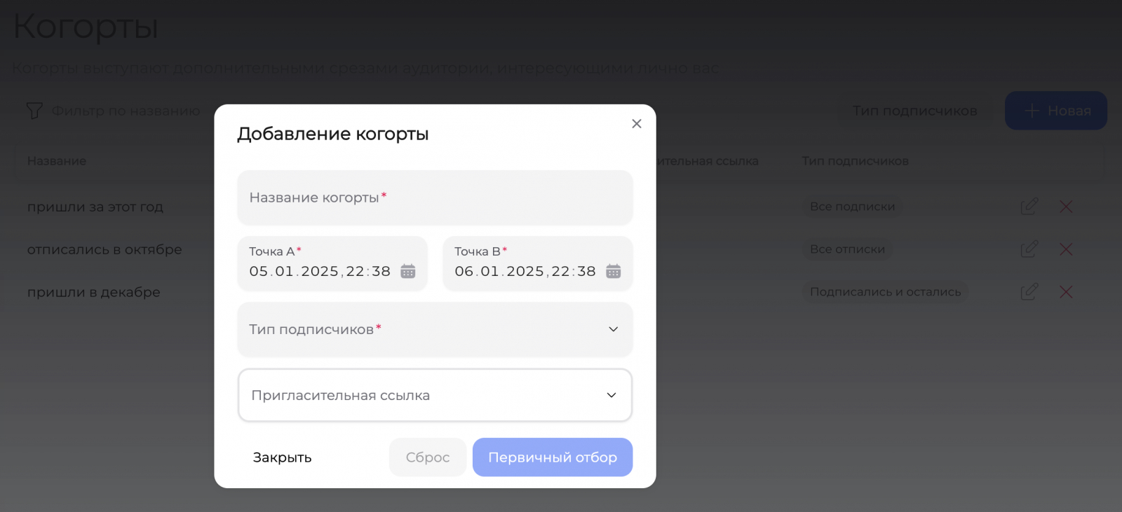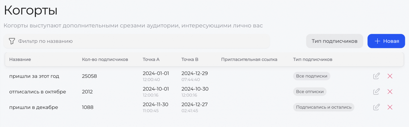 - Например, «подписчики, которые пришли в канал в январе 2025 года» — это одна когорта.