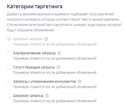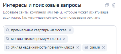 Бизнес, Премиальному и Элит сегменту мы рекомендуем размещаться только в категории “Целевых запросов”, так как ядро целевой аудитории узкое, и более общие таргетинги только увеличат стоимость промежуточных конверсий и как следствие, стоимость привлечения конечного покупателя.