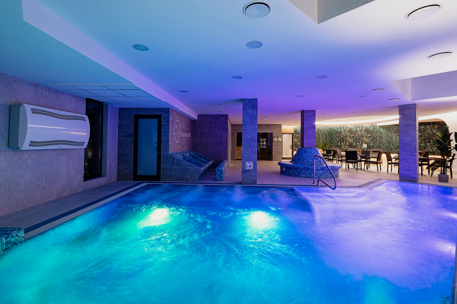 А также предлагаем комплекс, оснащенный самым современным оборудованием: бассейн с аэромассажными лежаками и гидромассажем, финская и можжевеловая сауны, хаммам, русская баня, зона релакса, душ впечатлений.