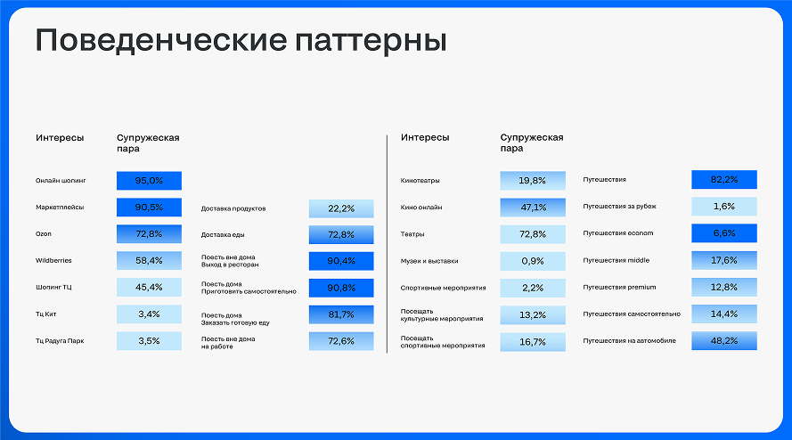Для каждого проекта выделяются три сегмента покупателей, один из которых становится ключевым. Под каждый формируется коммуникационная карта: мотивации, барьеры, инсайты и релевантные смыслы.