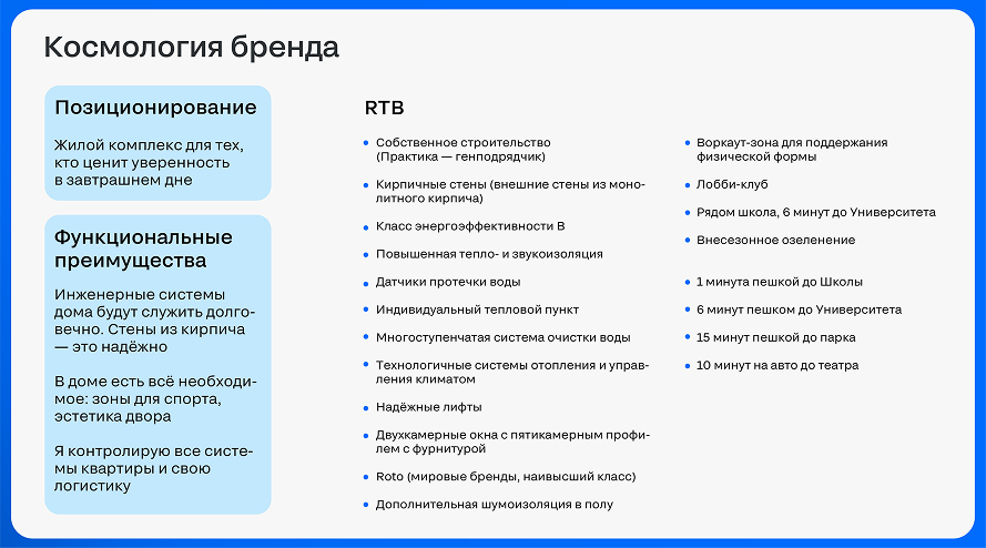 На основании анализа формируется продуктовая стратегия: инженерные решения, благоустройство, оформление лобби, дополнительные «фишки».