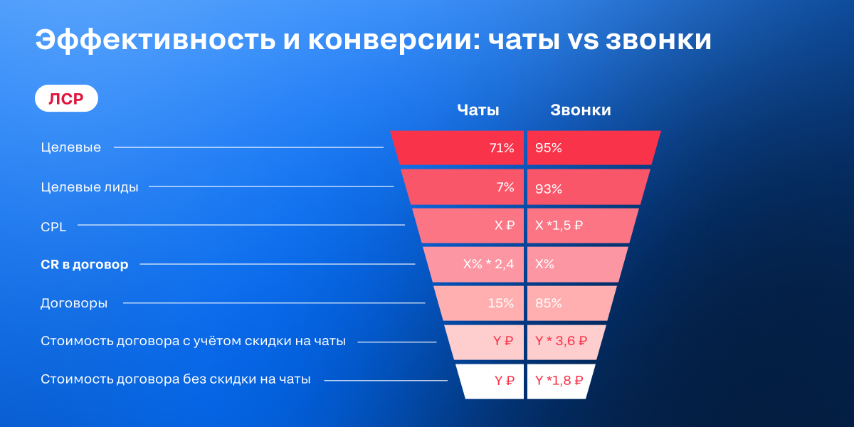 Перед командой стояла практическая цель: увеличить количество качественных обращений и при этом снизить стоимость привлечения договора. Чаты рассматривались как способ усилить коммуникацию с аудиторией, которая не всегда готова звонить.