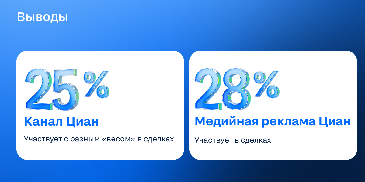 Еще один важный инсайт: в 93% сделок, где канал Циан имеет атрибуционный вклад, в пути клиента присутствует медийная реклама.