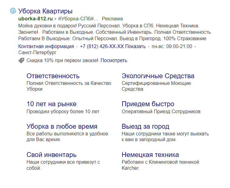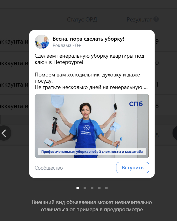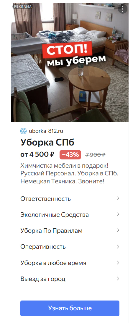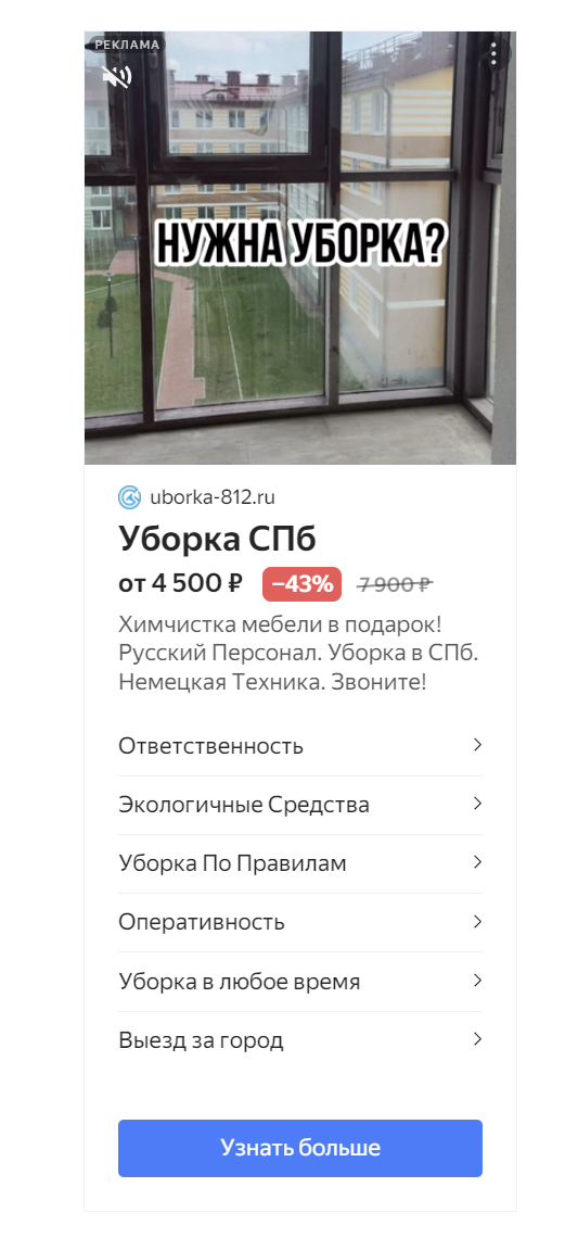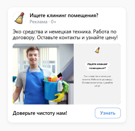 Рекламные объявления для клининговых услуг должны быть яркими и вызывающими доверие. Пример: