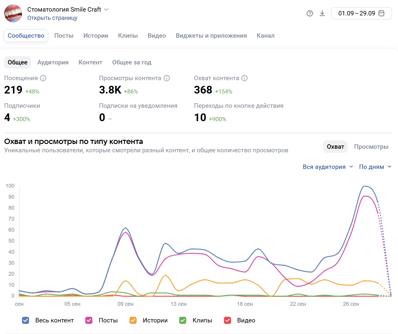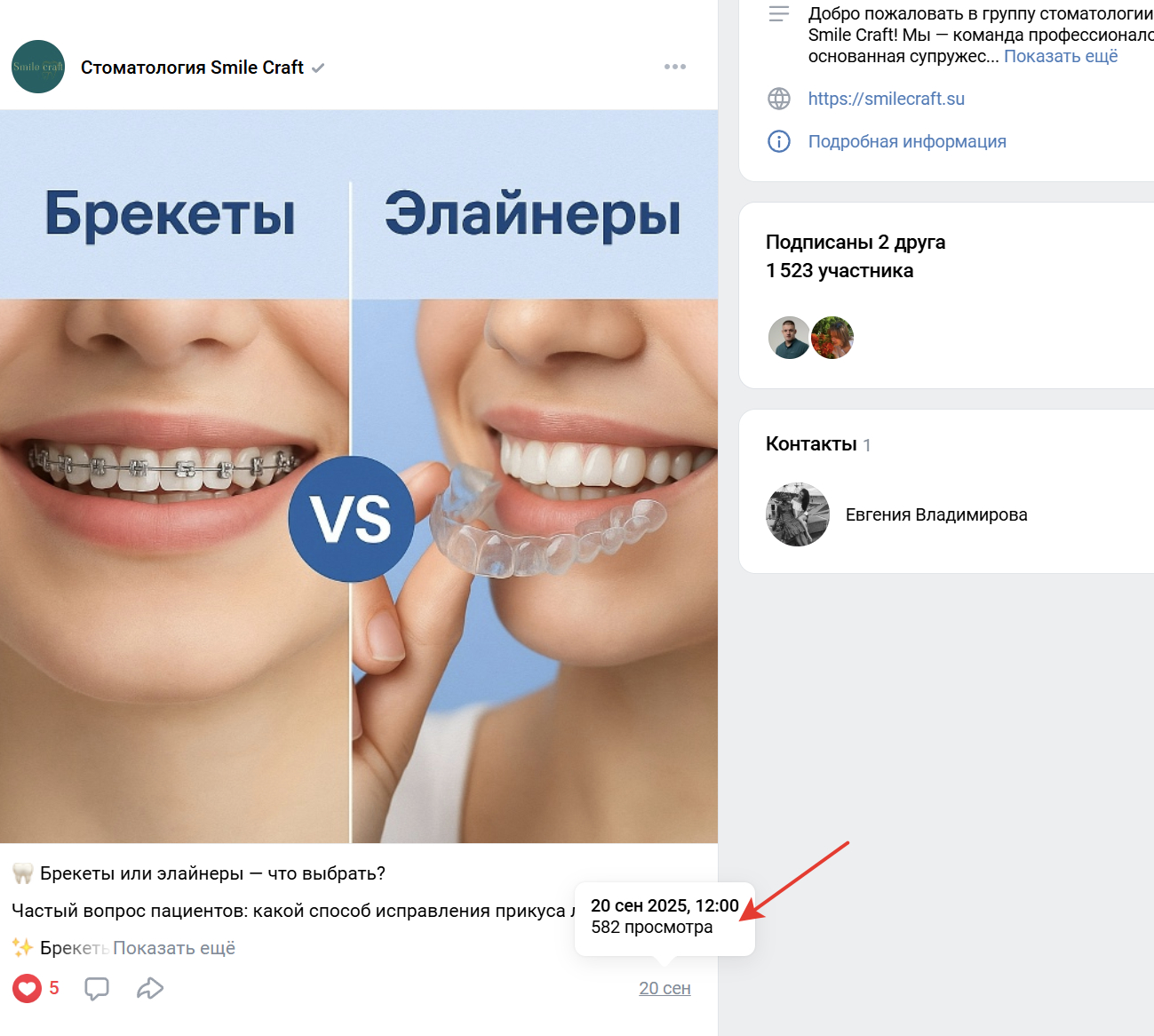 Привет! Меня зовут Артём Крылов, я занимаюсь таргетированной рекламой и контентом во ВКонтакте. Сегодня расскажу короткий, но показательный кейс, как мы ведём SMM для стоматологии “Supersmile” в Петербурге, и зачем вообще бизнесу нужно регулярно делать контент.