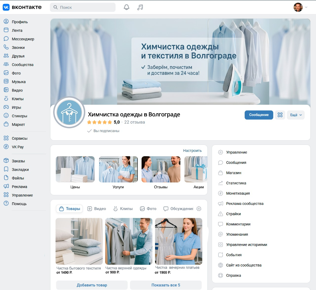 Продвижение химчистки одежды через ВКонтакте в Волгограде работает, если: 1. Чётко определить свою аудиторию и говорить с ней понятным языком. 2. Упаковать сообщество под доверие и профессионализм. 3. Публиковать реальные кейсы — до/после, отзывы, видео. 4. Настроить VK Ads с конкретным оффером и гео. 5. Быстро обрабатывать заявки и поддерживать высокий уровень сервиса.