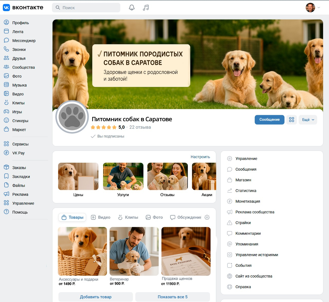 Сообщество питомника во ВКонтакте — это не просто страница с фото собак, а полноценная онлайн-витрина, где потенциальный владелец видит заботу, профессионализм и открытость.