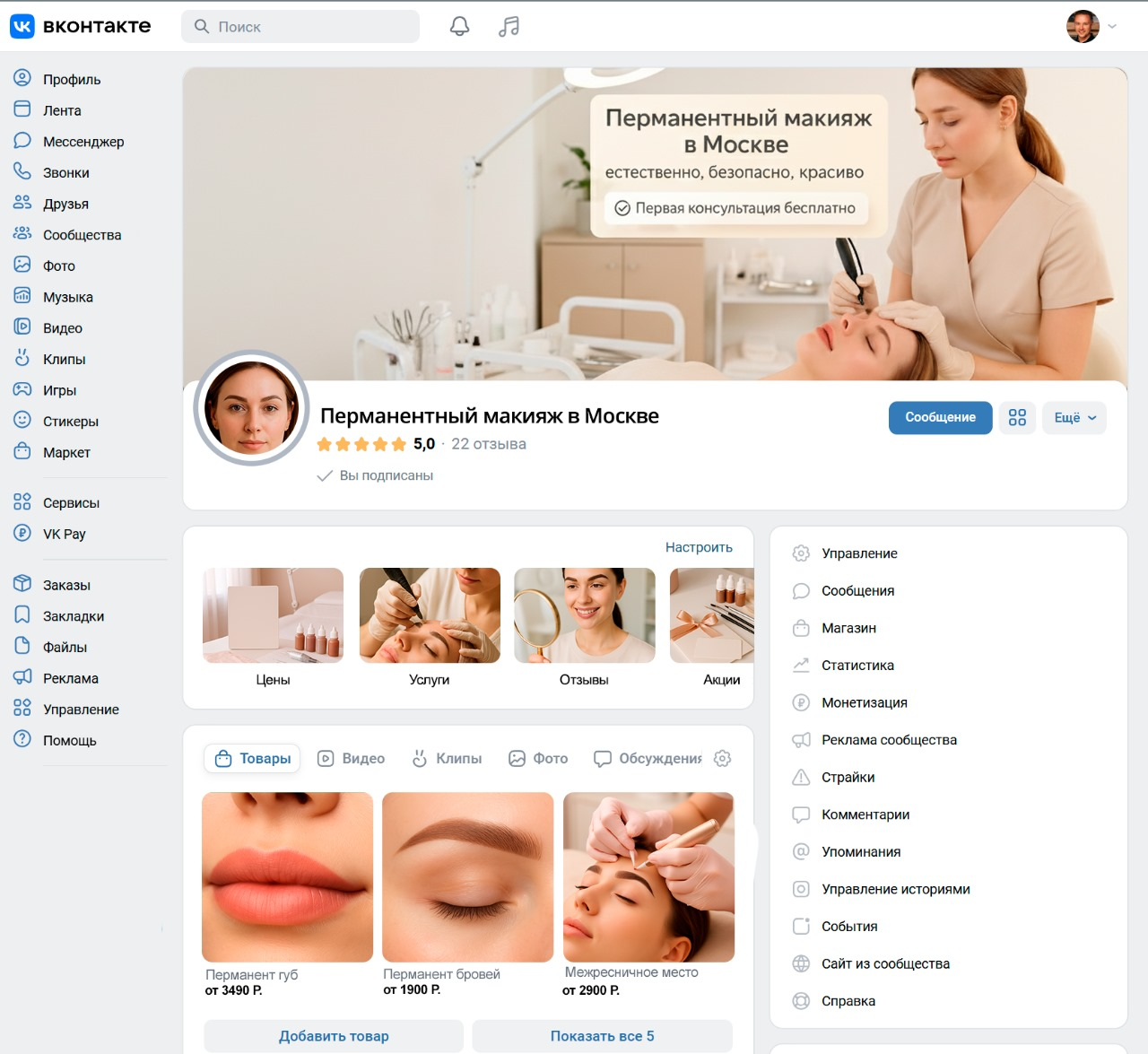 Ко мне обратилась мастер по перманентному макияжу из Москвы. У неё была красивая работа, довольные клиенты, но новых заявок почти не поступало. Instagram* после блокировок перестал приносить поток клиентов, а сарафанное радио работало медленно. Мы решили сосредоточиться на продвижении ВКонтакте, потому что эта площадка активно растёт, даёт возможность показывать мастерство и запускать рекламу с точным таргетингом. Цель — увеличить количество заявок, показать качество процедур и сформировать доверие у новой аудитории.