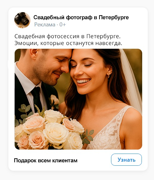 Продвижение свадебного фотографа через ВКонтакте в Санкт-Петербурге даёт стабильный поток заказов, если: