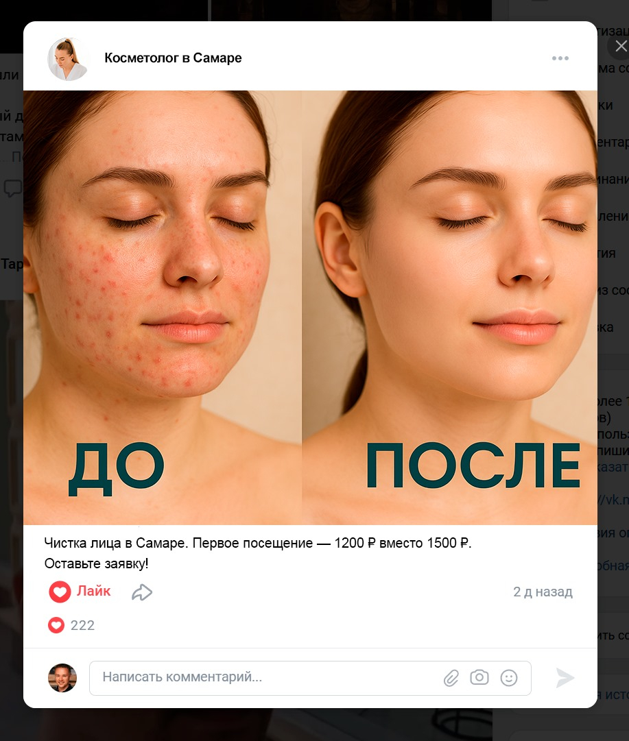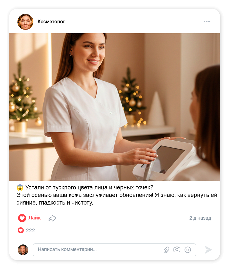 У косметолога во ВКонтакте часто всё выглядит «правильно»: красивые фото кабинета, пара работ, несколько постов про уход. Но записей из соцсетей мало. Люди смотрят, лайкают, иногда спрашивают цену — и исчезают. А вы тратите время: придумываете темы, пишете тексты, снимаете сторис, отвечаете в сообщениях, и всё равно нет стабильного потока клиентов.
