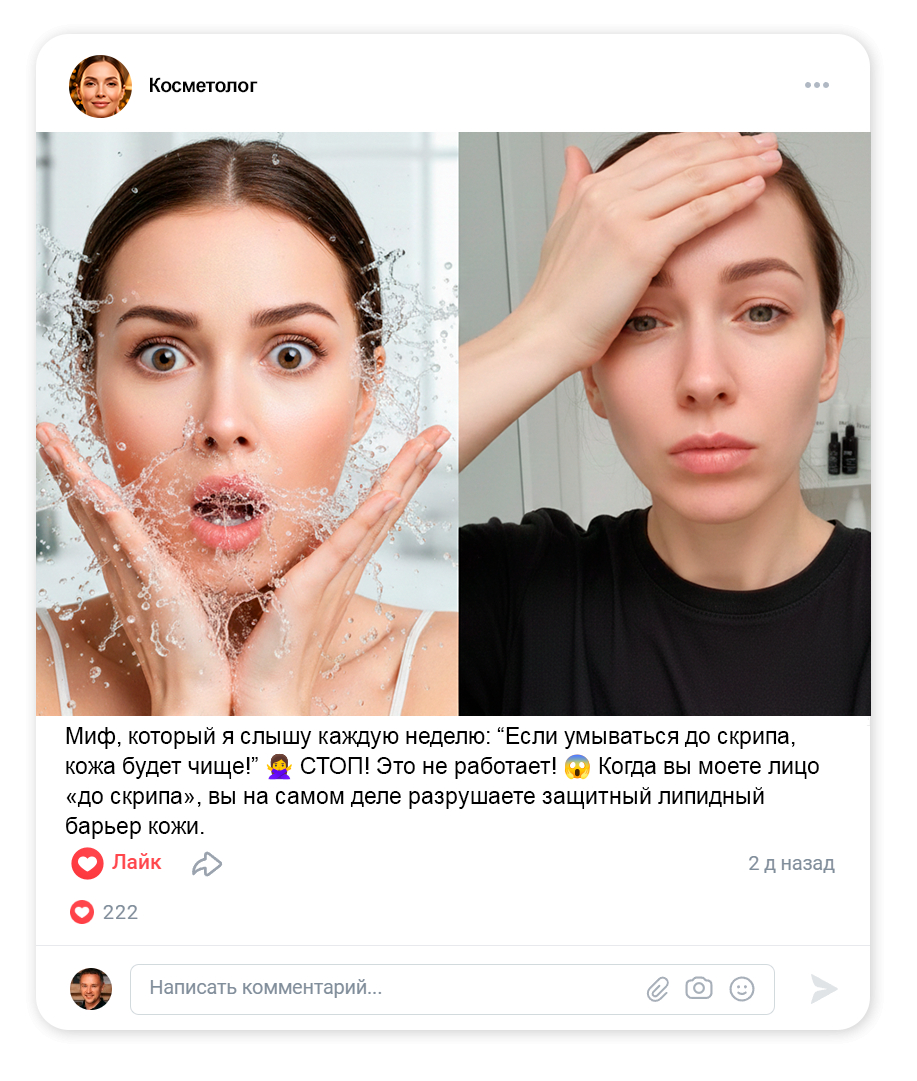 Причина обычно не в том, что вы «плохо ведёте ВК». Просто в бьюти-услугах человеку нужно больше уверенности. Он боится ошибиться: «а мне точно можно?», «а будет больно?», «а вдруг станет хуже?», «а стерильно?», «а какой результат?», «а сколько процедур?». Если ваш профиль не снимает эти страхи и не объясняет путь клиента простыми словами — он выбирает того косметолога, у кого «всё понятно».