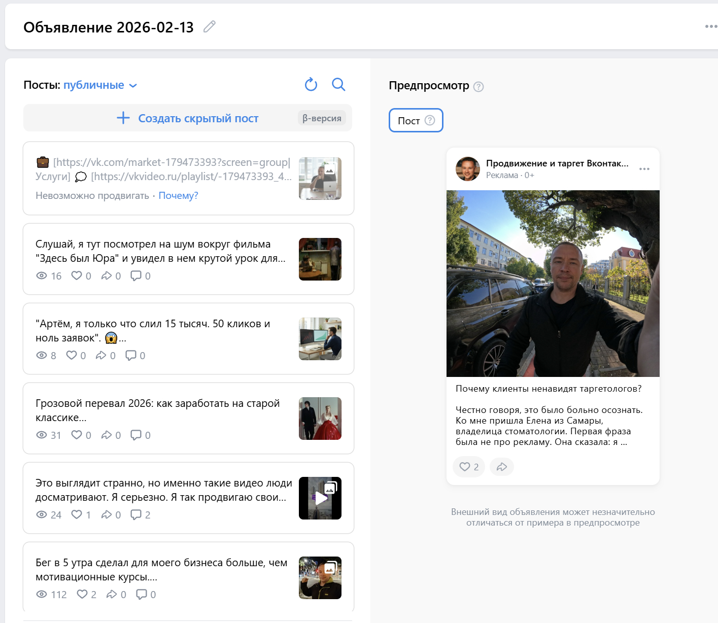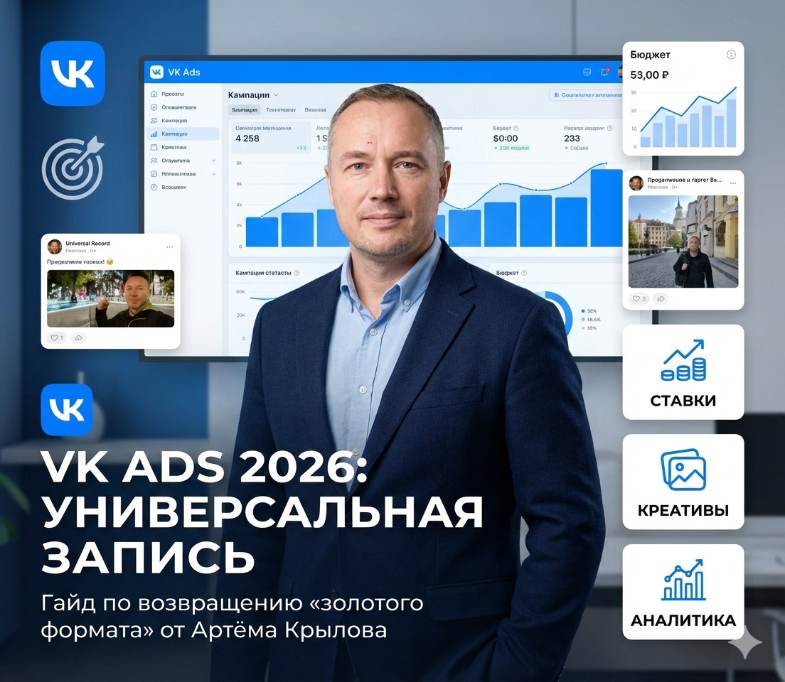 Привет! На связи Артем Крылов. Если вы занимаетесь продвижением в ВК, то знаете: начало 2026 года выдалось жарким. Старый кабинет окончательно ушел в историю, посевы стали нестабильными, а многие коллеги по цеху начали жаловаться на слив бюджетов в новом VK ADS.