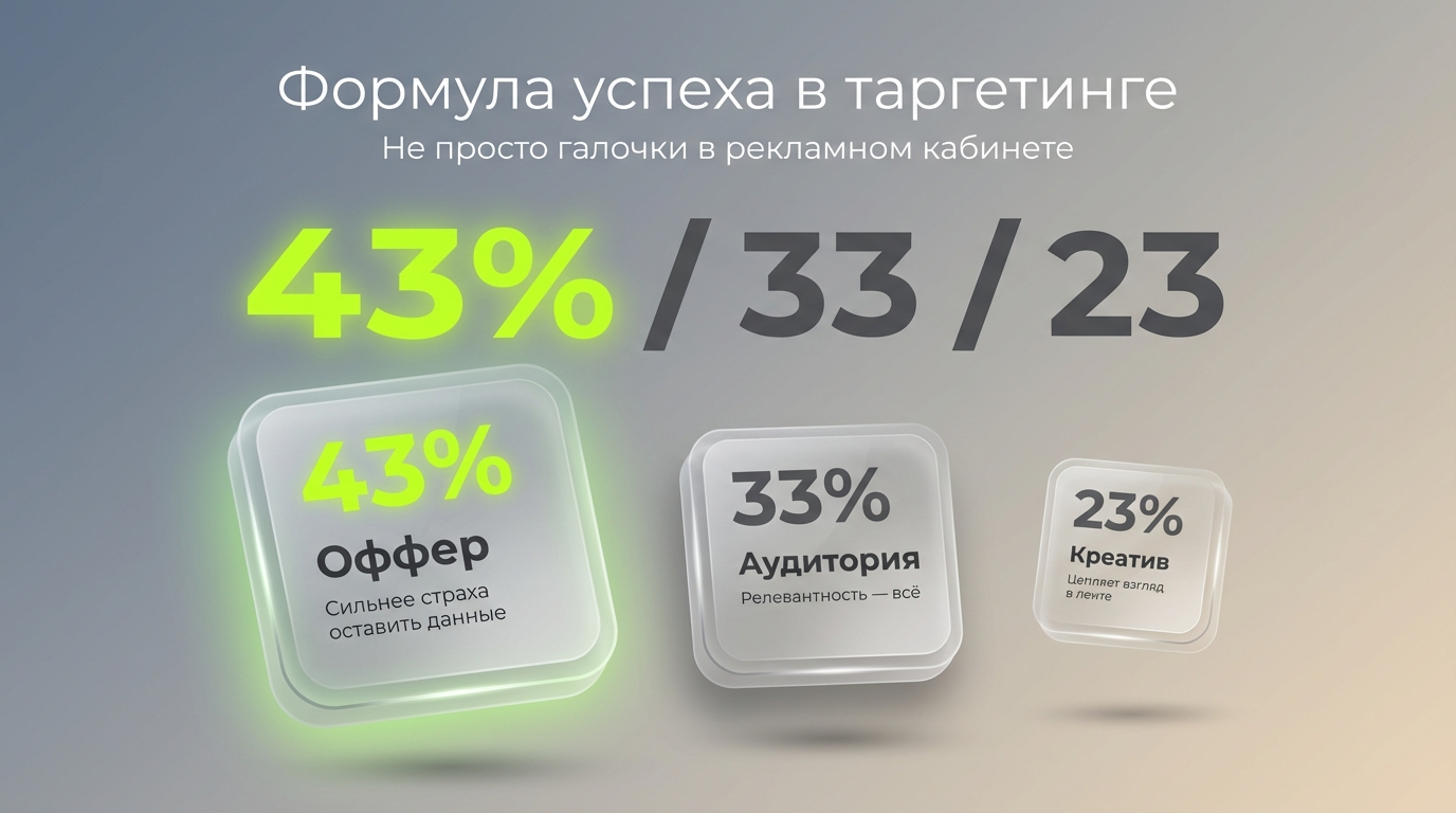 Успех в таргете сегодня это не только правильные галочки в кабинете. Я по своему опыту вывел формулу 43/33/23: