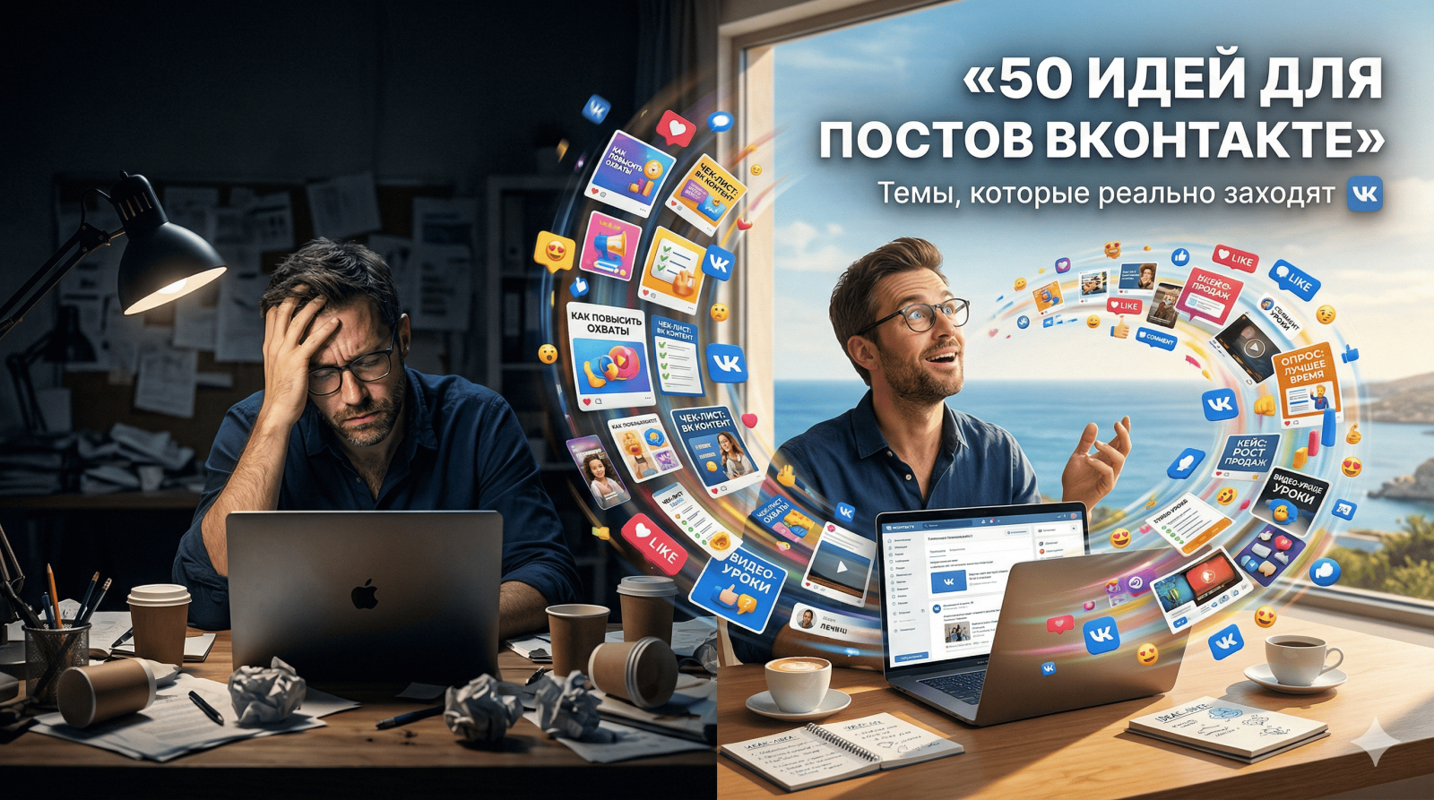 Однажды я просидел три часа перед чистым листом, пытаясь придумать хотя бы одну вменяемую тему для поста своего клиента-юриста. В голове было пусто, как в офисе в 10 вечера, а дедлайн по контент-плану горел ярким пламенем. За 10 лет в маркетинге я видел это сотни раз: классный эксперт или владелец бизнеса впадает в ступор, потому что не знает, о чем писать сегодня. Идеи для постов ВКонтакте заканчиваются быстрее, чем бюджет на первый таргет, и это выжигает предпринимателей изнутри. Я сам начинал в дизайне и знаю: без четкой структуры и свежих мыслей группа превращается в кладбище репостов. Мой подход изменился, когда я перестал ждать музу и перешел на системную генерацию. Ниже я расскажу про идеи для постов ВКонтакте простым языком. Без воды, опираясь на свои 10 лет практики. Вы узнаете: как составить список тем на месяц, какие рубрики приносят охваты, 3 ошибки в выборе тем и как поручить генерацию идей нейросети.