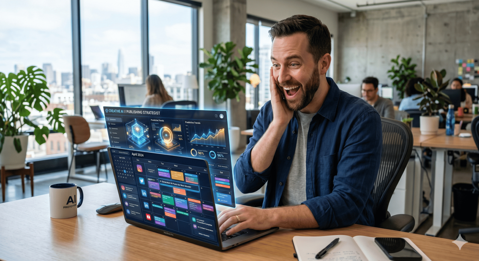 · Использовать кучу разных сервисов. Писать черновик в Word, генерировать картинку в одной нейросети, а потом копировать всё это в третий сервис для планирования. Это долго и глупо.
