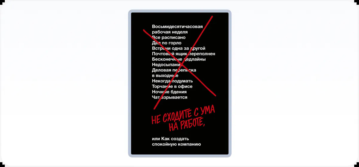 Книга написана основателями системы управления проектами Basecamp. Без воды, смс и регистрации они рассказывают о том, как избавиться от тревоги, стресса и хаоса, осложняющих работу многим командам.
