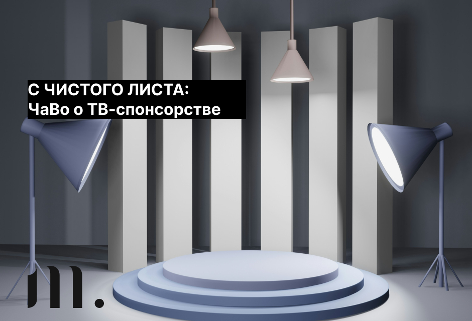 У нас есть книга, которая объяснит вам буквально всё и даже больше. Но мы разумные люди, поэтому не агитируем вас читать монографию. Держите краткое определение: ТВ-спонсорство — это форма телевизионной рекламы, где логотип, атрибутика и/или продукция, и/или сообщение о продукции рекламодателя интегрируется в ТВ-контент различными способами. Если максимально упростить: представьте, что вашу продукцию рекомендует Леонид Аркадьевич во время эфира «Поля чудес».