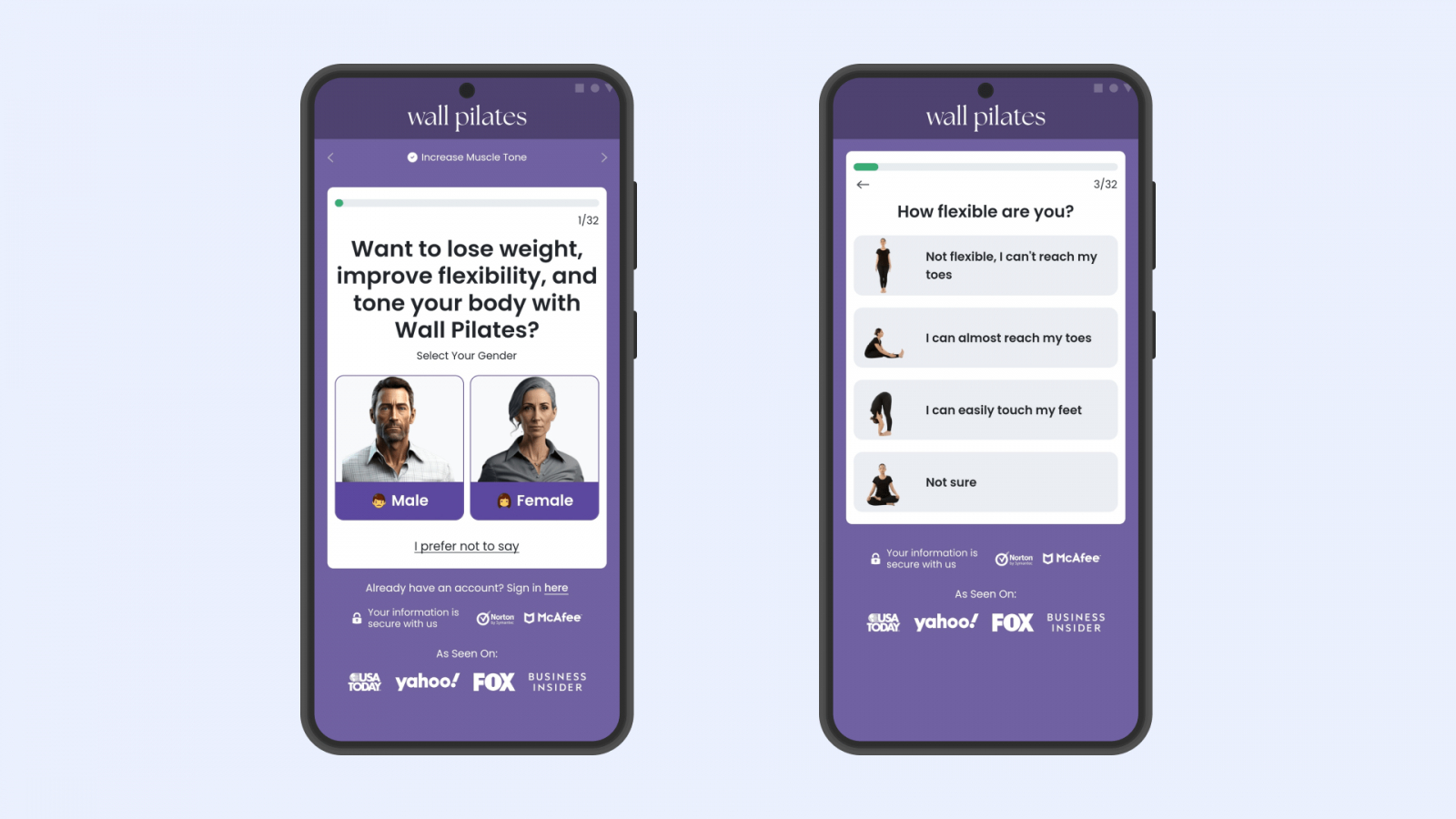 А вот онбординг приложения Wall Pilates включает в себя… 32 уточняющих вопроса! Безусловно, подробный сбор «анамнеза пользователя в приложении про пилатес — это хорошо, это поможет составить качественный план персональных тренировок, но 32 вопроса — это слишком много.