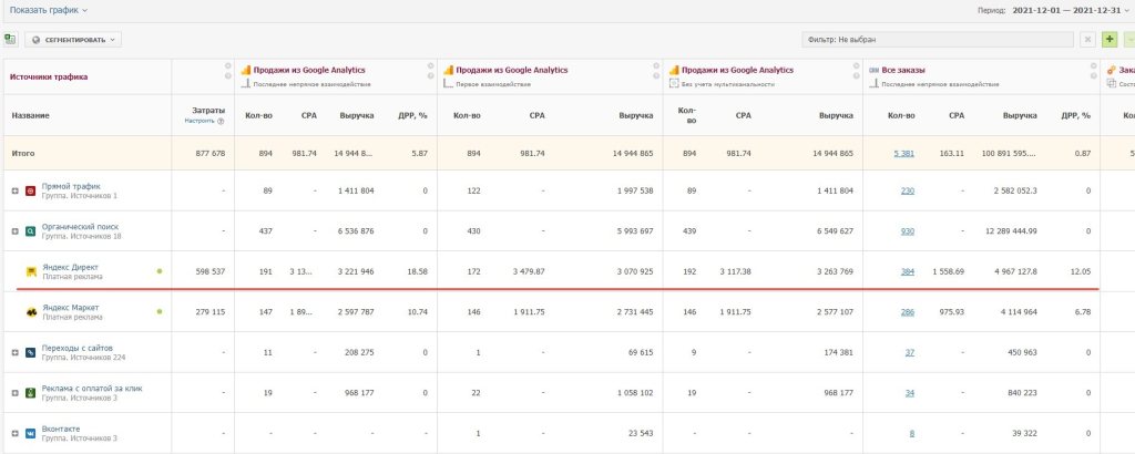 Первые результаты: Сначала мы запускали только те направления и типы кампаний, в которых были уверены. В августе начинали с небольшого бюджета, в сентябре его удвоили. Далее перешли к следующему этапу — внедрение и тестирование рекламных кампаний для менее эффективных категорий и разделов. Ниже представлены скриншоты за период октябрь-декабрь 2021 года.