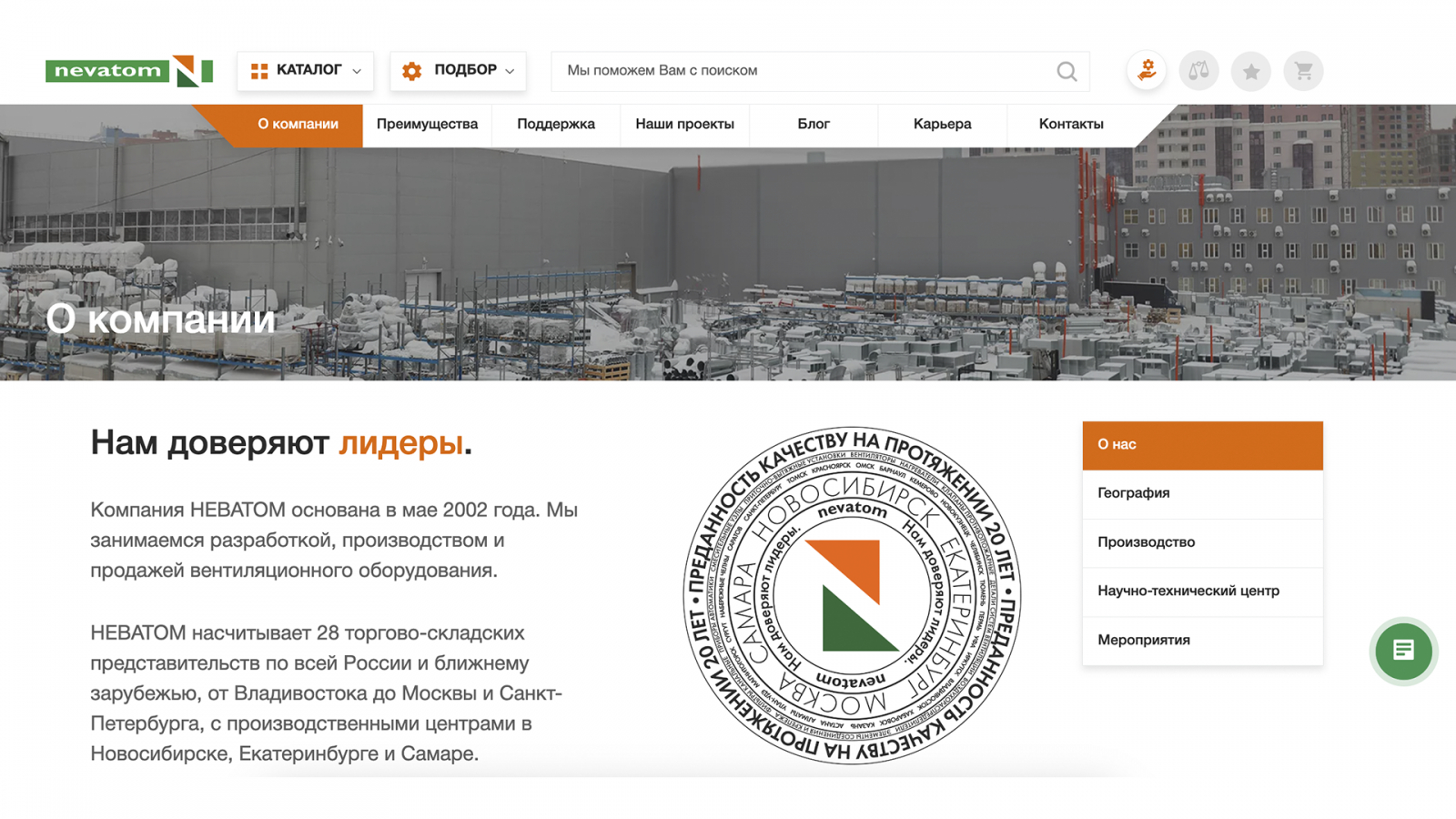 У компании "НЕВАТОМ" были очень амбициозные планы — разработать передовую e-commerce-платформу для торговли вентиляционным оборудованием, которая оцифрует и автоматизирует сложный процесс B2C- и B2B-продаж в данной отрасли.