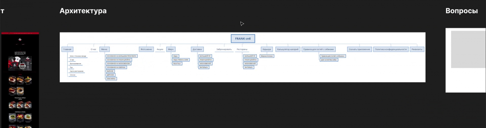 Так же на примере Frank. У них есть два сайта — московский и питерский. В нашем случае нас интересуют различия сайтов. Почему эти сайты разные, почему информация на них отличается и так далее.