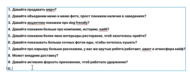 Во время анализа мы также выделяли гипотезы, которые также стоит расписывать. Например, часть из наших гипотез: