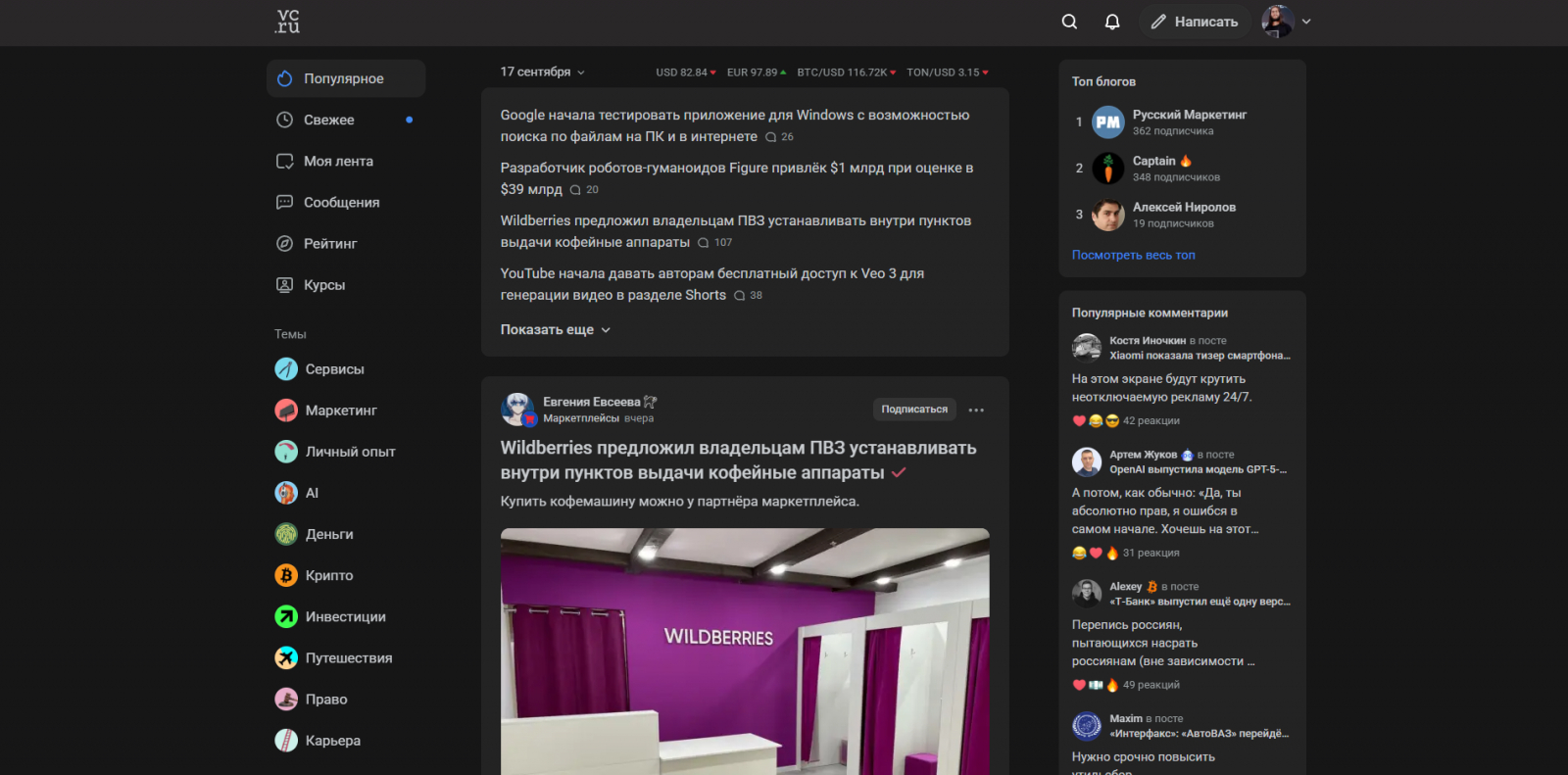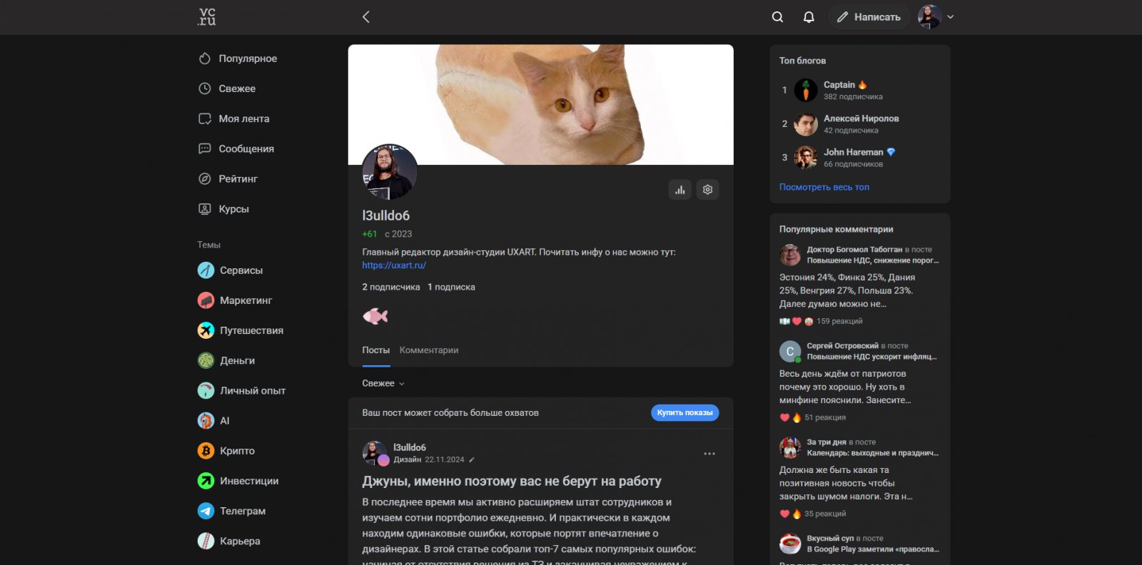 Темы на VC — отдельные страницы «по интересам». В них собраны материалы по конкретной теме (спасибо за масло-масляное), а пользователи по желанию могут отслеживать только такой контент.